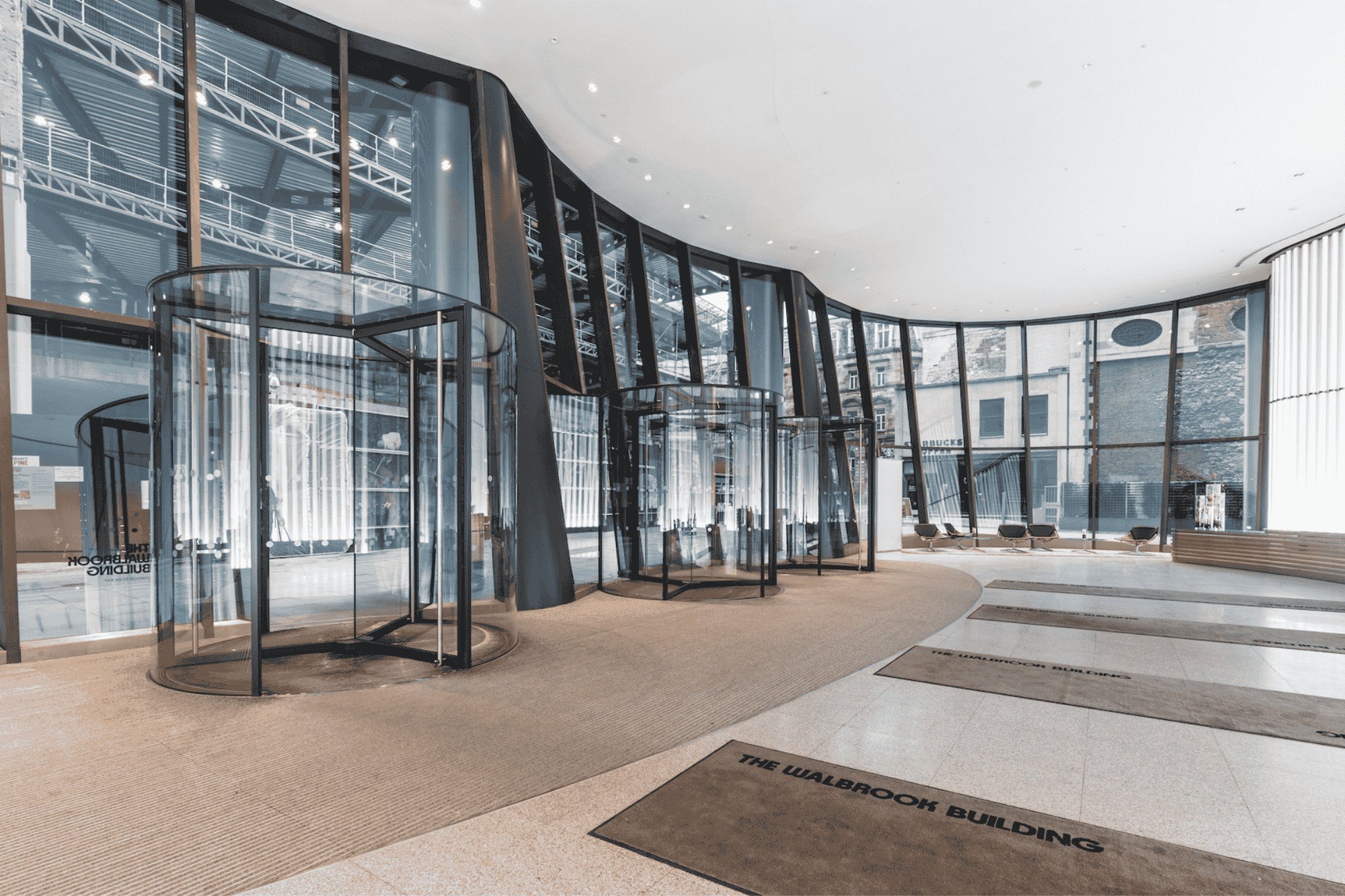 Als Teil einer hochdetaillierten architektonischen Vision zeigt der Eingang von The Walbrook die Fähigkeit von BDS Entrances, komplexe Designanforderungen in zuverlässige und langlebige Eingangssysteme umzusetzen.